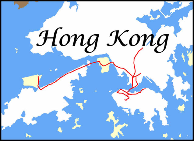 Hong Kong est constituée de l'ïle de Hong Kong (76 km2), de Kowloon (10 km2) et surtout des Nouveaux Territoires rattachés au continent, plus d'une multitude d'îles et d'îlots (235) pour la plupart inhabités. Elle possède un relief montagneux s'élevant jusqu'à presque 1 000 m.